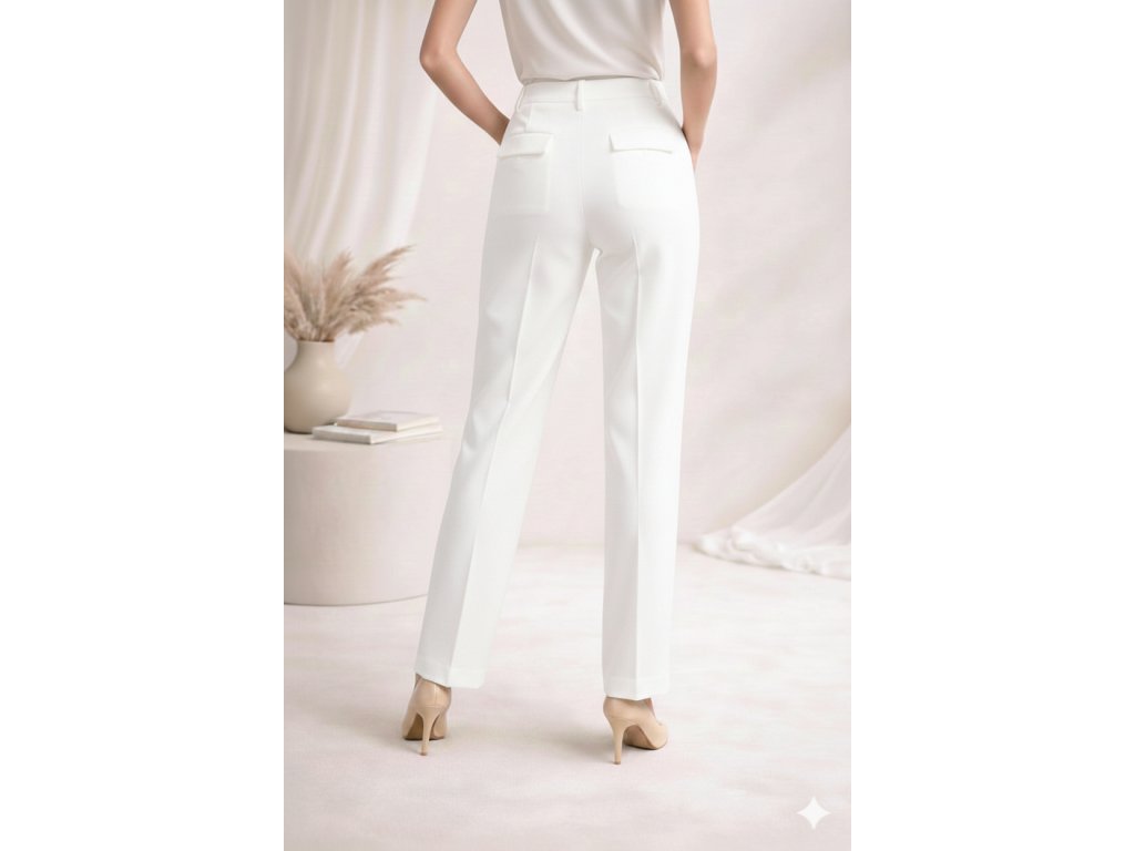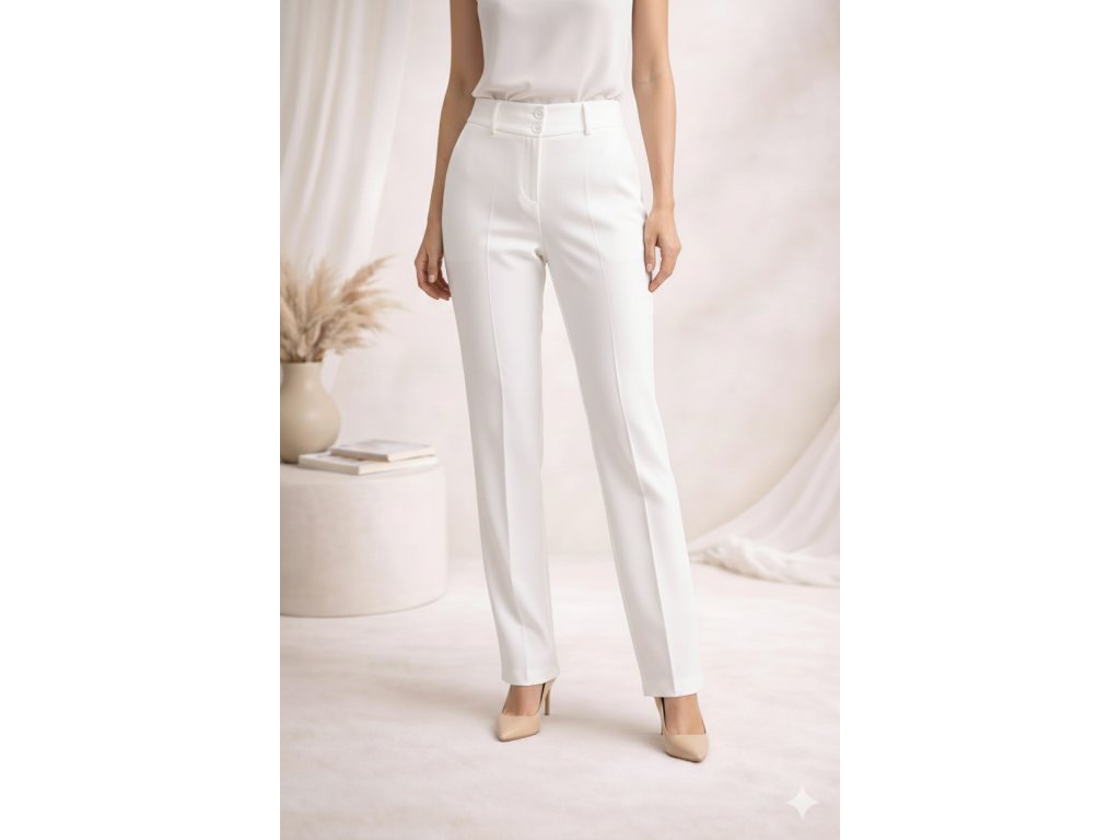 Objevte spojení elegance a pohodlí s těmito nadčasovými společenskými kalhotami. Model je navržen s dvojitým knoflíkem v pase, který dodává sofistikovaný a moderní vzhled. Styl doplňuje imitace kapes, jež dodává kalhotám čistý a minimalistický design, ideální pro každodenní nošení i formální příležitosti.