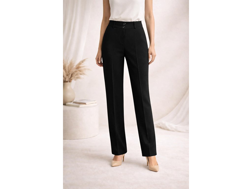 Objevte spojení elegance a pohodlí s těmito nadčasovými společenskými kalhotami. Model je navržen s dvojitým knoflíkem v pase, který dodává sofistikovaný a moderní vzhled. Styl doplňuje imitace kapes, jež dodává kalhotám čistý a minimalistický design, ideální pro každodenní nošení i formální příležitosti.