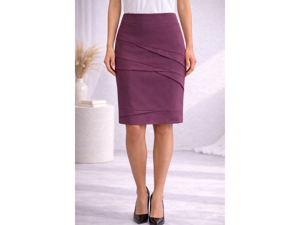 Elegantní sukně ke kolenům s jemným skládáním a zapínáním na zip vzadu.