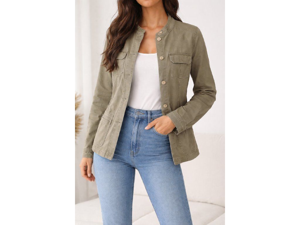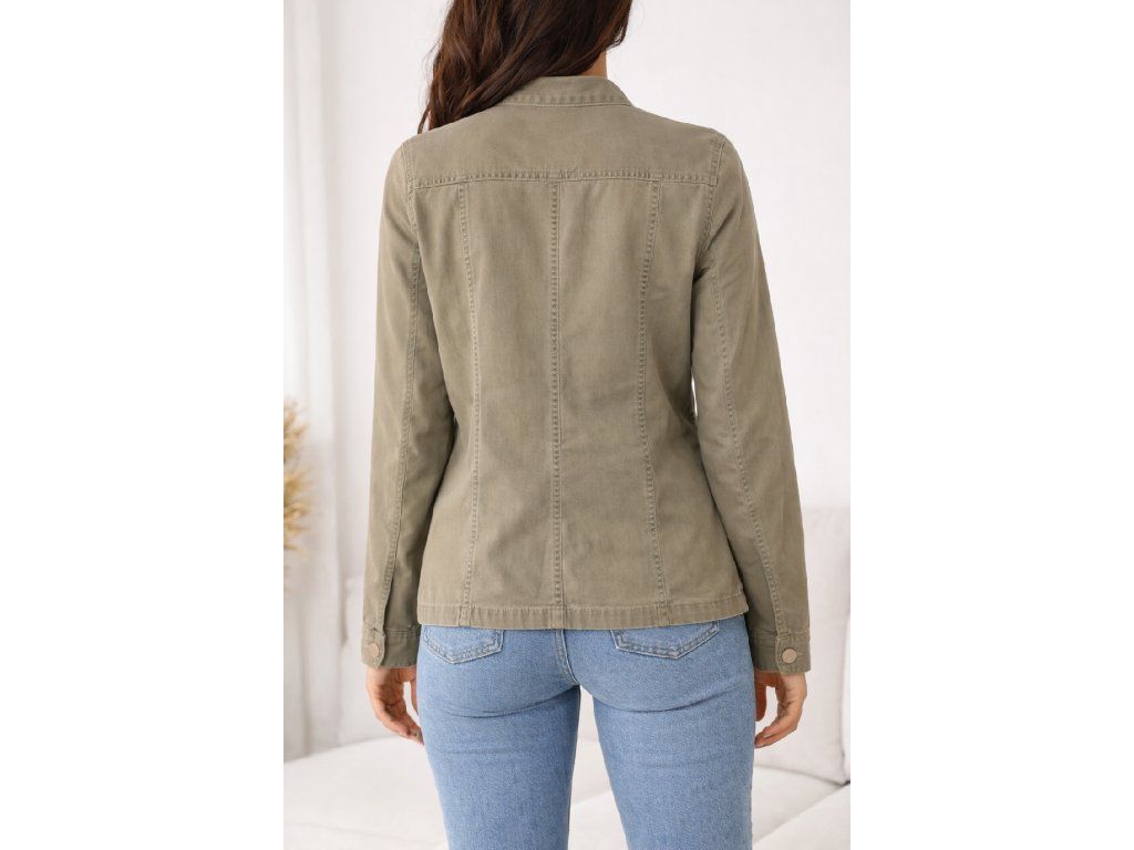 Dámská bunda v khaki odstínu s knoflíky a praktickými kapsami. Stylový a pohodlný kousek pro každodenní nošení.