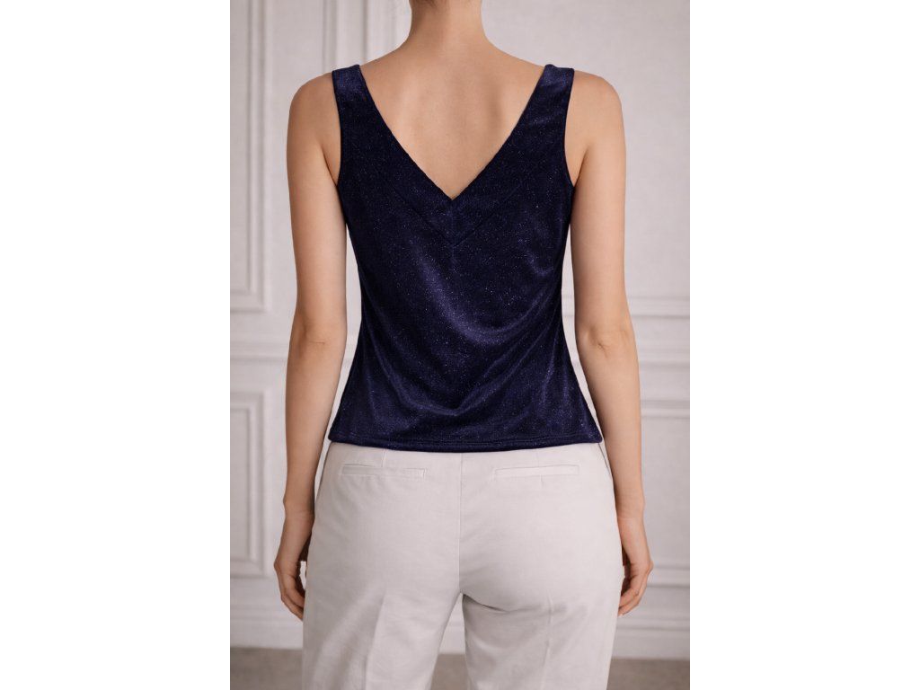 Elegantní dámský top bez rukávů s jemným leskem a véčkovým výstřihem. Stylový kousek ideální na večer i slavnostní příležitosti.