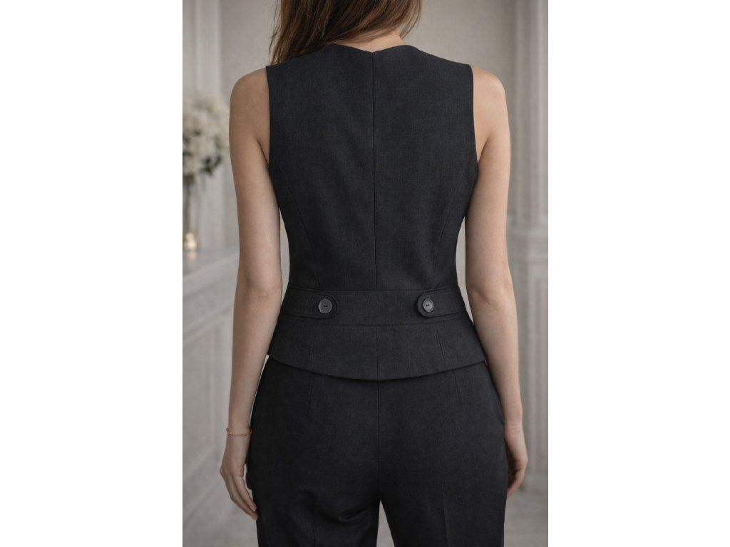 Elegantní dámská vesta v tmavém odstínu s projmutým střihem, která krásně zvýrazní siluetu. Nadčasový kousek ideální k formálním i smart-casual outfitům.