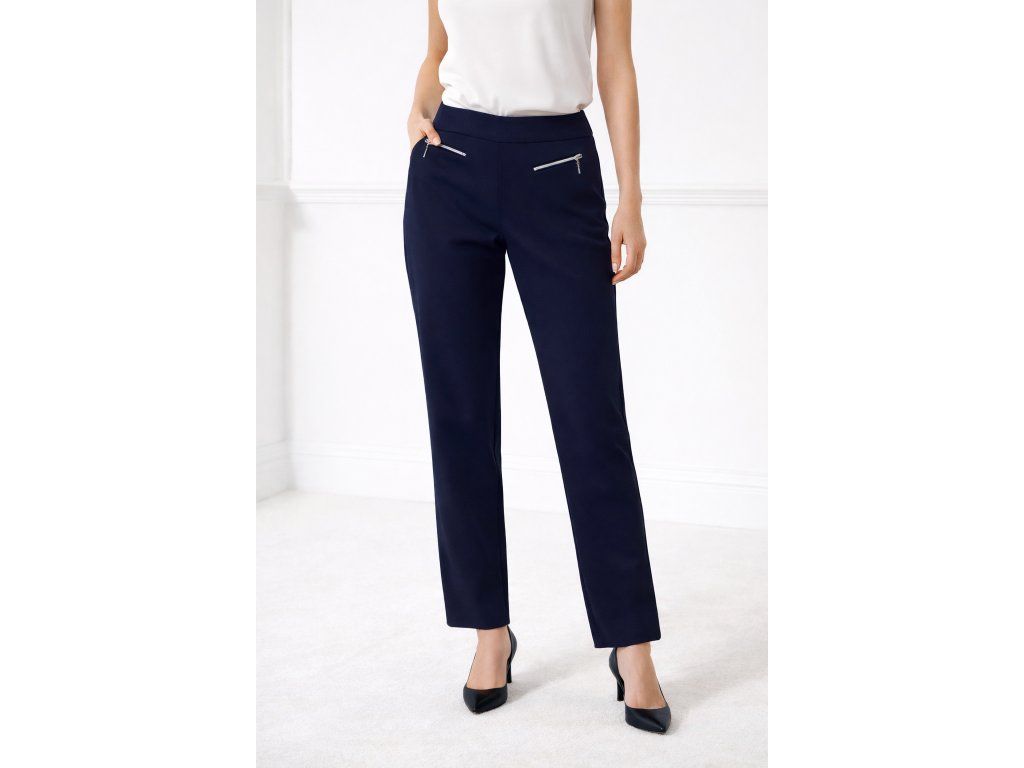 Tmavě šedé až modré pružné kalhoty GLAMOUR se stříbrným knoflíkem, které zvýrazňují postavu.